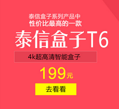 泰信電子暨二十周年慶(5月20日)特推出支持4K超高清的融合有線電視和網絡電視的泰信盒子T6,并以超低價199元回饋新老客戶,感謝廣大消費者對泰信的支持和認可。為期一個月的促銷活動即將結束,還未購買的朋友,抓緊行動吧!