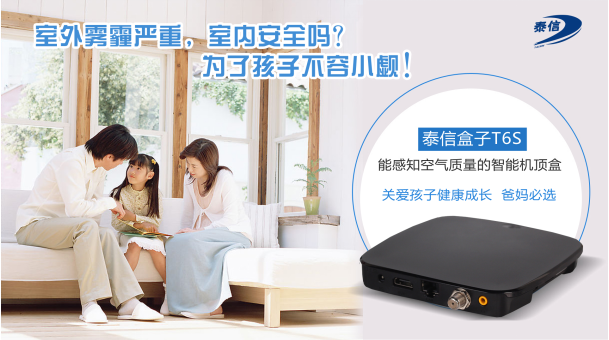 我們的生活中經常關注室外空氣質量,往往忽視了室內環境,室內污染氣體濃度若大于1.5PPM,室內環境已不適合居住;泰信盒子T6S將會通過電視大屏實時提醒,告知用戶進行預防。如煤氣泄露易引起一氧化碳中毒,若不及時發現將有生命危險。一氧化碳PPM>50,已經超出成人所允許的最大含量,兒童更易受到傷害。因為兒童好動、自我保護能力較差、免疫功能不健全,是環境污染的最大受害者。