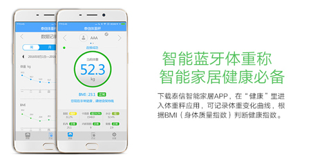 泰信智能藍牙體重秤告別單調的數據顯示,通過手機APP應用,可以有效記錄您設定時間段內的體重數據,讓您看到每一天的努力成果。另外,泰信智能藍牙體重秤可以同時支持多個用戶體重管理,能夠自動識別正在測量的家庭成員,對每個人的體重數據進行分別存儲、分析和顯示,是您安全、貼心的體重家庭管家,是家庭體重健康管理的必備產品。