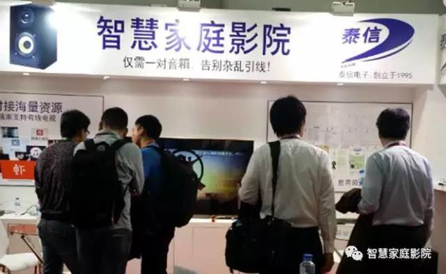 泰信電子第一次參加廣州國際音響展,就提出智慧家庭影院“只需一對音箱,告別雜亂連線!"的口號,不但實現了有線電視、網絡電視、卡拉OK、音效處理的融合,而且還擴展了家居物聯網應用,引起了人們的關注,參觀者絡繹不絕,成為展會為數不多的亮點。