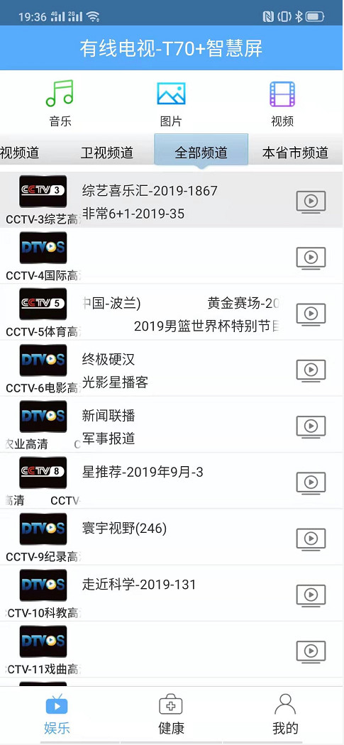 這是手機切換T70直播頻道的操作界面。在看電視的時候,可在手機上查看電子節(jié)目指南(EPG)信息,并選擇要看的直播頻道。