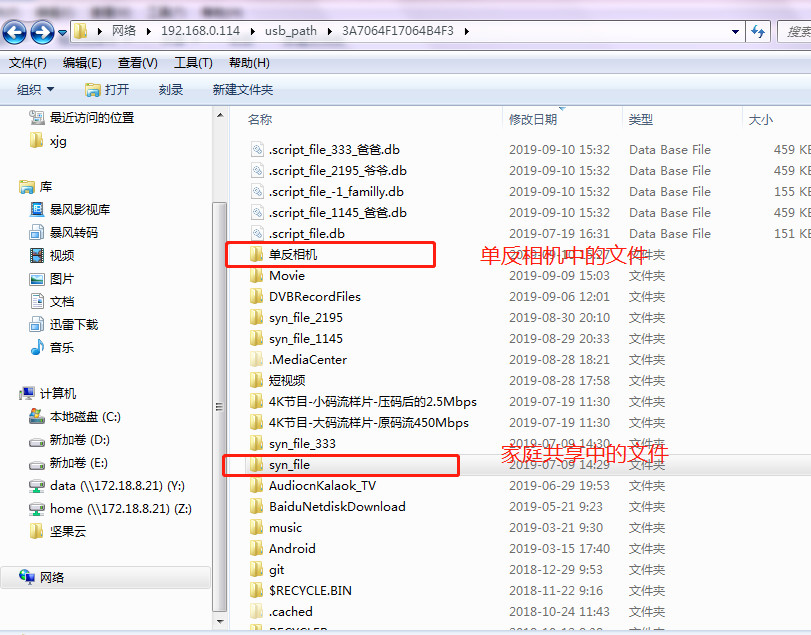 在T70的硬盤中創(chuàng)建單反相機專用的文件夾,再也不用擔(dān)心電腦硬盤被擠爆了。硬盤中的音樂、圖片、視頻,都有每個人都有自己的“個人空間”和“家庭共享”空間。家庭共享文件夾是“syn_file”,可以把編輯后的照片放在這里與家人共享。