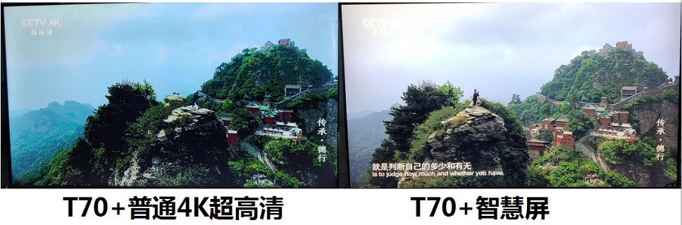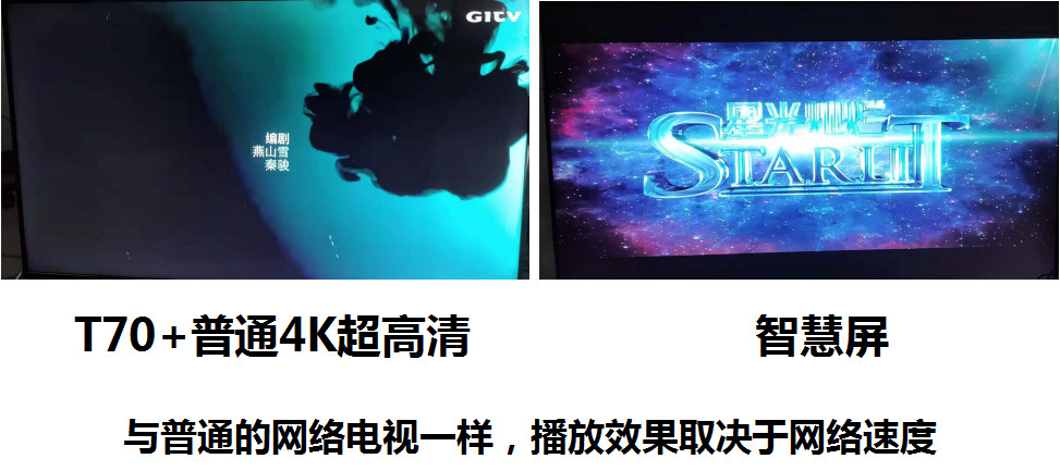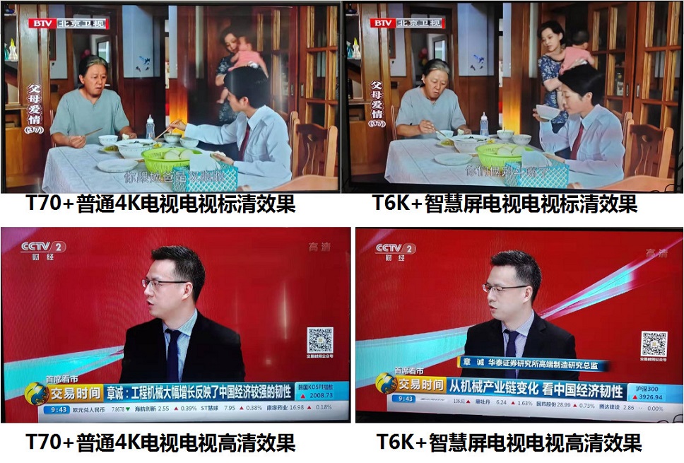 把T70與T6K對調(diào)效果一樣。這說明,如果連接普通高清電視,T70和T6K沒什么區(qū)別,普通電視與智慧屏也沒啥區(qū)別。