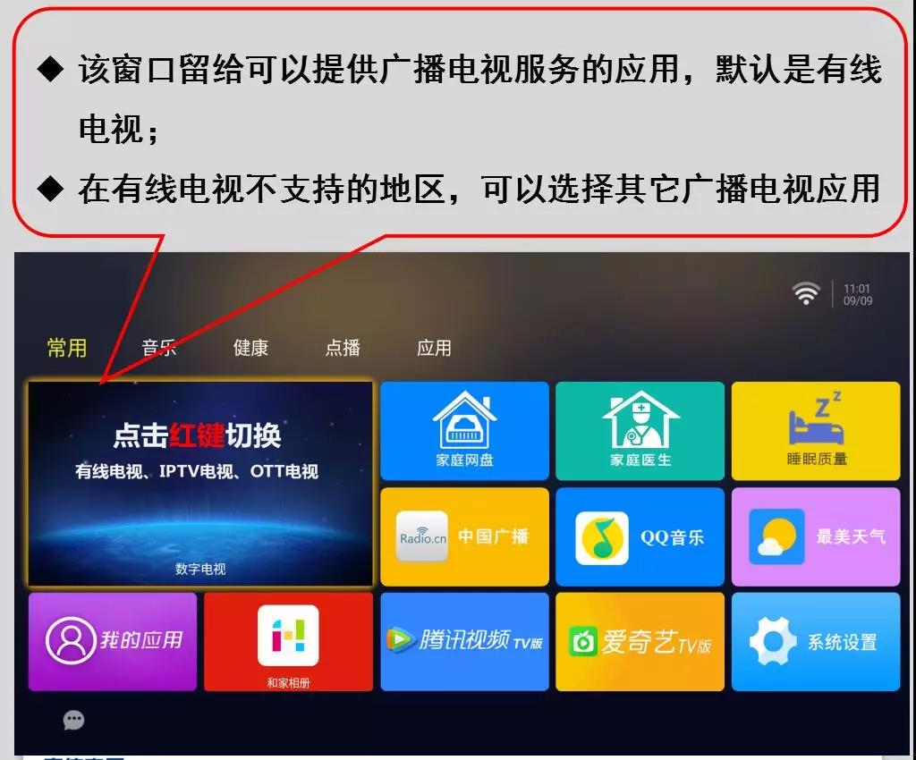 雖然T70在硬件上支持有線電視,也在出廠前作為默認(rèn),但一些地方的有線電視業(yè)務(wù)仍然只捆綁自己的機頂盒。這時,T70給了用戶更多的選項:將焦點移到直播電視窗口,點擊遙控器上的紅色按鍵,切換廣播電視服務(wù)提供商,將選擇權(quán)還給用戶。