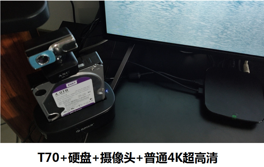 這是插在T70上存儲照片和視頻的4T硬盤及硬盤盒。硬盤盒上有電源開關(guān),在需要的時候打開電源,不用擔(dān)心隱私泄露。如果T70在10分鐘左右不操作硬盤,硬盤停止轉(zhuǎn)動。