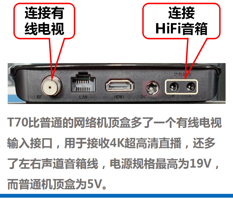 請問T70和機頂盒連電視有什么不同?