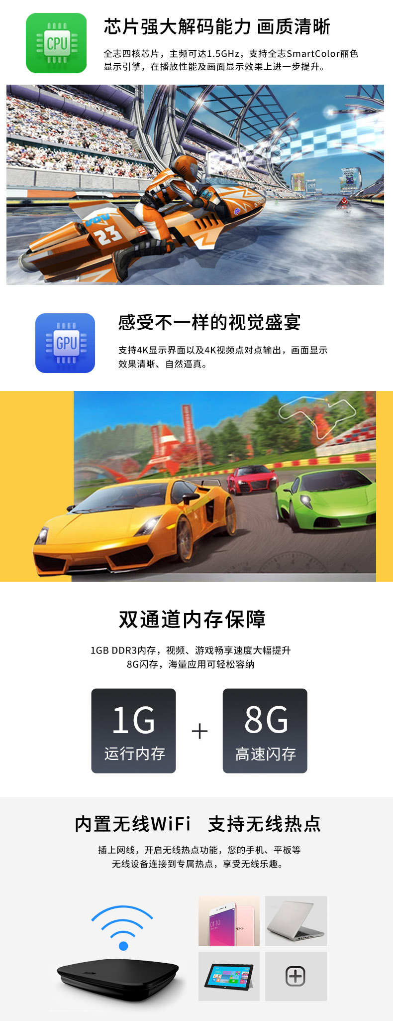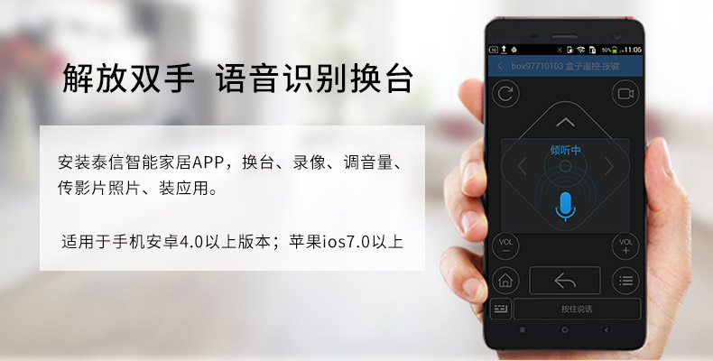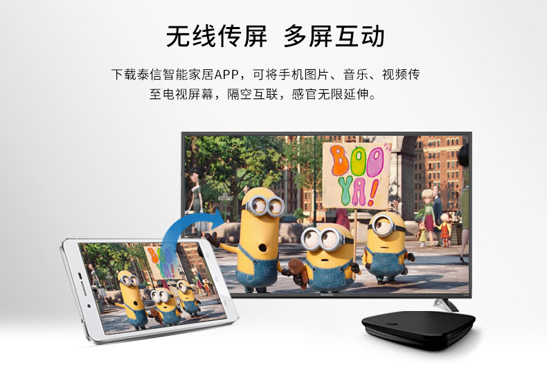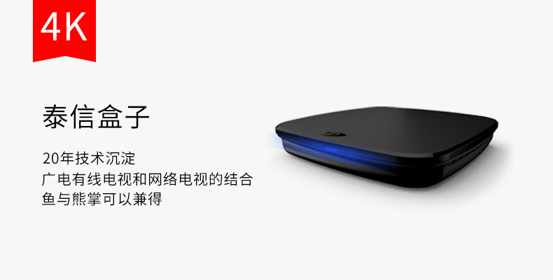 泰信率先引領有線電視進入智能四核時代,是廣電有線電視+網絡電視領軍品牌!T6A搭載自主研發的直播電視操作系統DTVOS,1G內存+8G閃存,支持4k超高清、H.265、3D藍光,畫質更清晰,操控更流暢!綠色節能設計。泰信20年技術積淀,值得信賴!泰信盒子變身智能家居控制中心,體驗全新升級。