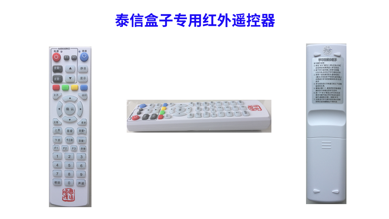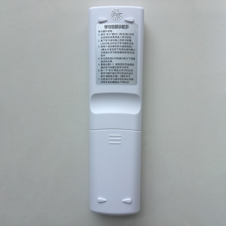 泰信2020新版學(xué)習(xí)型遙控器,學(xué)習(xí)功能的說(shuō)明書(shū)在遙控器背面,新品雖然比之前的黑色遙控器要稍微大一點(diǎn),但是手感好、性能持久穩(wěn)定、外觀大氣、使用方便靈敏!
