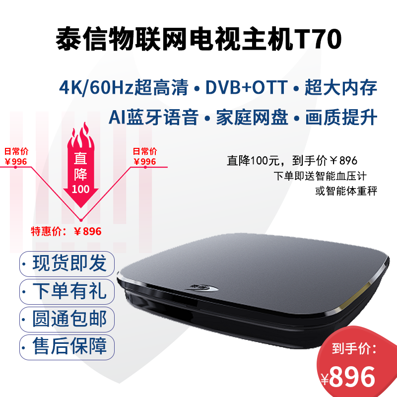 套餐一:送智能血壓計(這款血壓計是泰信自主研發的,一鍵測量、智能加壓,可以語音播報并查看歷史測量數據)!